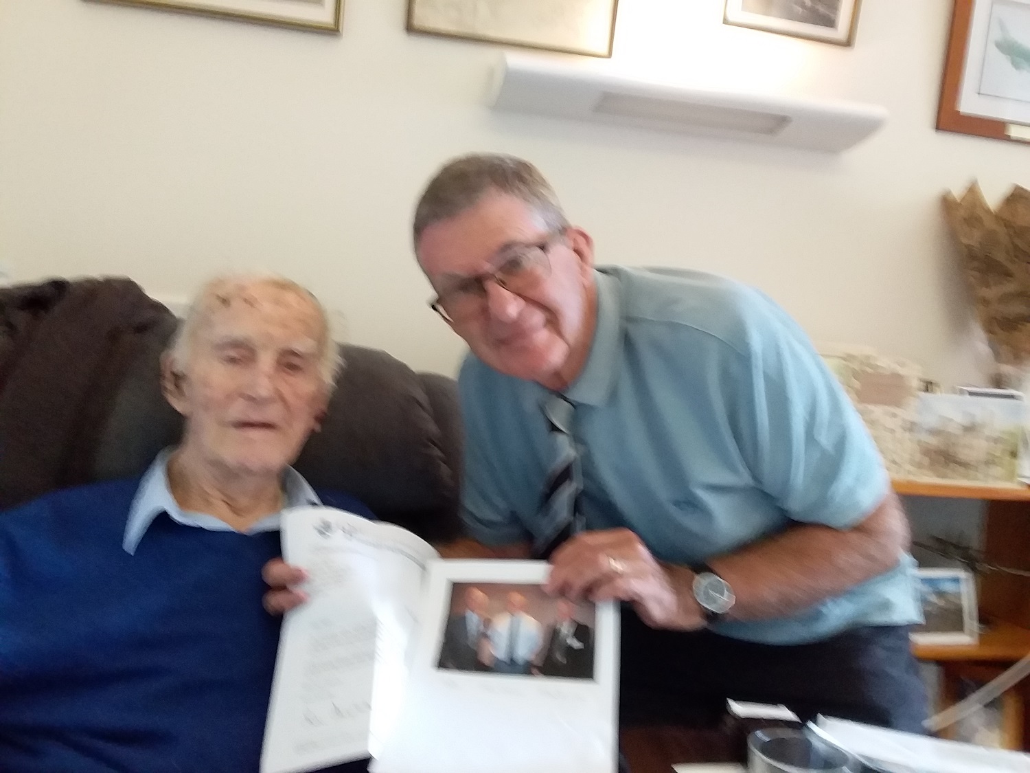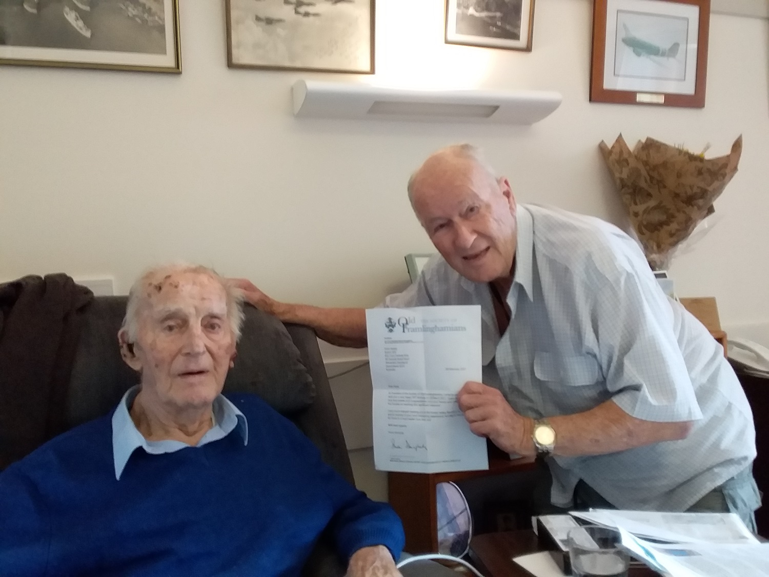 ORIGINAL STORY: While the SOF AGM was being held in the UK, on the other side of the world in Australia, Peter Bailey (K34-38) was celebrating his 99th birthday. In advance, then President Simon Dougherty had sent a message on behalf of the Society and this was personally delivered by OF Neville Marsh (S53-61) and John Gates (S44-48).