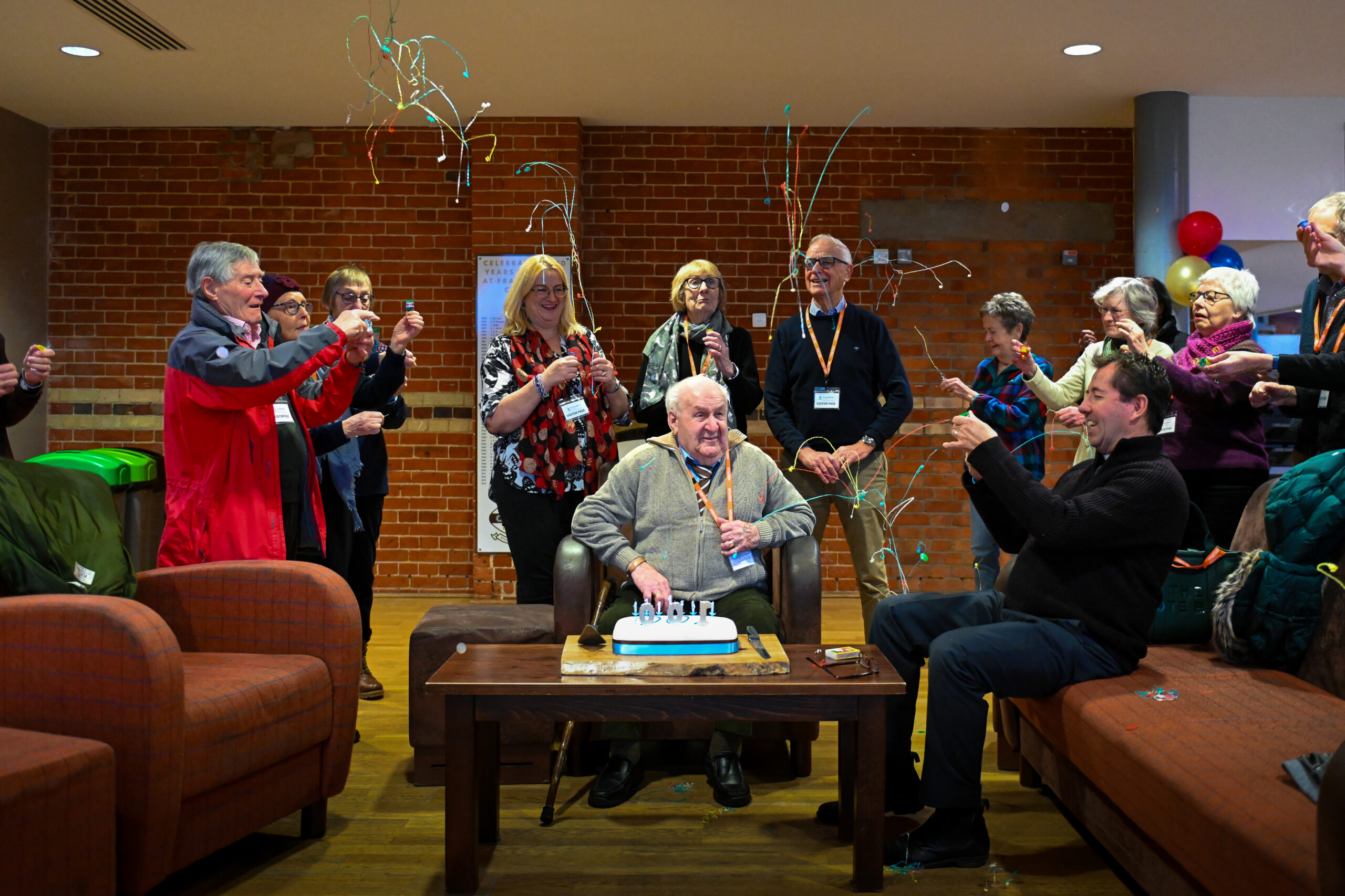 The College Chaplain Brynn Bayman arranged at 9am for the singing of Happy Birthday in the Chapel. This was followed in Paul’s Court by a party involving his family, 20 local people and a few words from Louise North. The following are some pictures taken.